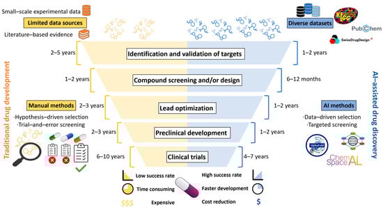 The drug discovery and development pipeline remains a complex and resource-intensive process that requires significant time and financial investment. Typically, the journey from the identification of a lead compound to obtaining market authorization spans a lengthy period of 10 to 15 years. This extensive timeline underscores the considerable technical, regulatory, and economic obstacles that must be navigated throughout the process. Financial investments in this pipeline often exceed USD 1 billion, reflecting the high costs associated with research, development, and regulatory compliance [1]. These challenges are not only financial, but also involve overcoming numerous scientific and logistical hurdles, which can delay progress and increase costs.