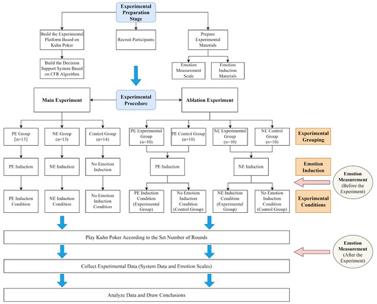 To tackle these challenges and fill the gap in the literature, in this paper, we propose an innovative approach by incorporating environmental variables into the emotion process, constructing a two-tiered progressive inquiry environment–emotion and emotion–decision model. Utilizing the classic game scenario of Kuhn poker and Counterfactual Regret Minimization (CFR) algorithms [19,20], we developed an intelligent decision support system. By dynamically regulating the experimental environment, our study systematically reveals the dynamic impact of immediate emotions on participants’ risk preferences and cooperation tendencies. The core objective is to elucidate the regulatory role of immediate emotions within intelligent assistance systems through the “two-tiered progressive model”, providing new insights and empirical support for the design of emotion-driven intelligent decision systems.
