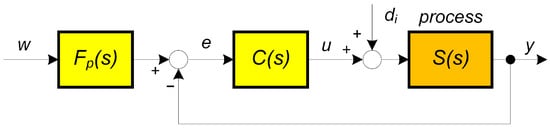 If the estimation of a piecewise constant disturbance is required with first-order filters, a reduced-order observer can be used. But its design is more complicated [27,28]. The need for filtering came also from the need to work with proper transfer functions (implementability requirement) and from the requirement to prevent the low-pass filter from creating an algebraic loop after introducing disturbance compensation.Since when reconstructing the input disturbance from the process output, must always contain the inverse of the process transfer function (8), and the reconstruction of the filtered disturbance can be proposed in a simplified manner for any integer within the framework of disturbance observer-based control (DOBC) [33,34,35]), even without reconstructing the process state. Moreover, let us recall once again that MCT was initially limited to analog implementation and therefore, just like PID, primarily focused on control design methods not requiring use of dead-time models. Although the “user manual” for PID controllers [8] also allowed for dead time in the controlled time-delayed processes.