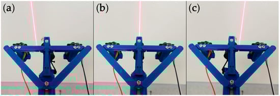 Representation of the movement of the laser line during digitizing. (a) Left position. (b) Center position. (c) Right position.