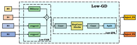 Specifically, Gold-YOLO comprises three main components: Low-GD, High-GD, and Inject. Low-GD is illustrated in Figure 5.