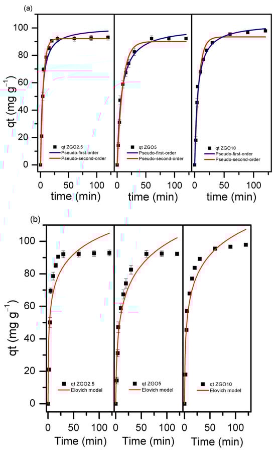 - Calimli, M.H.; Nas, M.S.; Burhan, H.; Mustafov, S.D.; Demirbas, Ö.; Sen, F. Preparation, characterization and adsorption kinetics of methylene blue dye in reduced-graphene oxide supported nanoadsorbents. J. Mol. Liq. 2020, 309, 113171. [Google Scholar] [CrossRef]