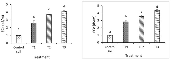 Variation in soil ECe according to the cyclic treatment.