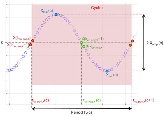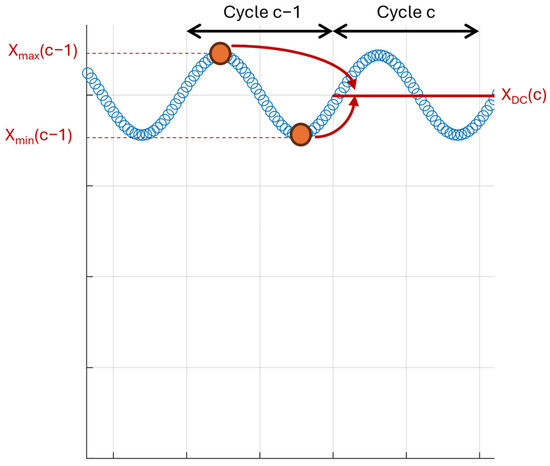 where refers to the DC component of signal X in cycle c, whereas and are the maximum and minimum values of the signal X in cycle c − 1, respectively (see Figure 6).