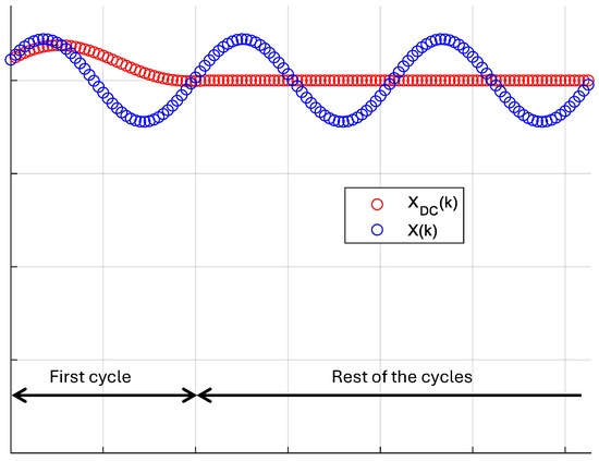 where and refer to the DC component and the value of signal X in time step k, respectively.