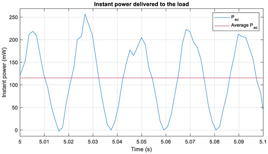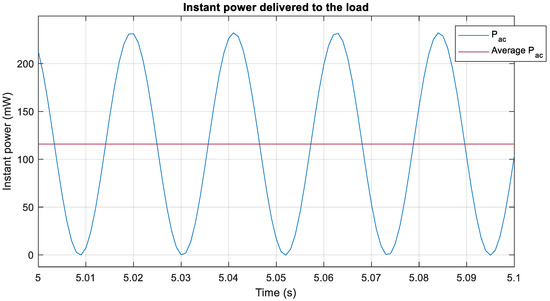 In this section, the instantaneous power calculation by method 1 is presented, relying on Equation (8) to evaluate the power consumed by the resistance of the RC load at each time lapse.