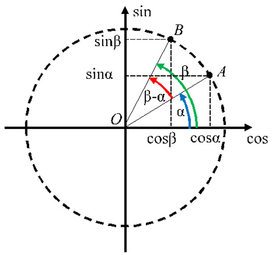Thus, if the points on the unit circle representing angles are close, then the difference in angles, whatever these angles are and whatever ranges they are considered, will be small as a result of normalization according to Equation (19) or Equation (20).