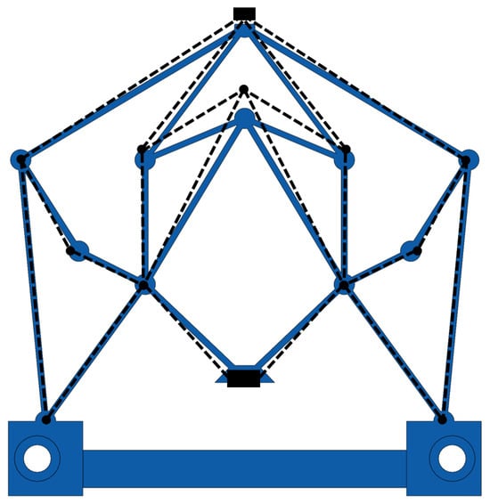 From Equation (8), it is evident that, for a given input force , the node displacements can be determined through analysis. Consequently, the displacement reducer’s reduction ratio can be determined as