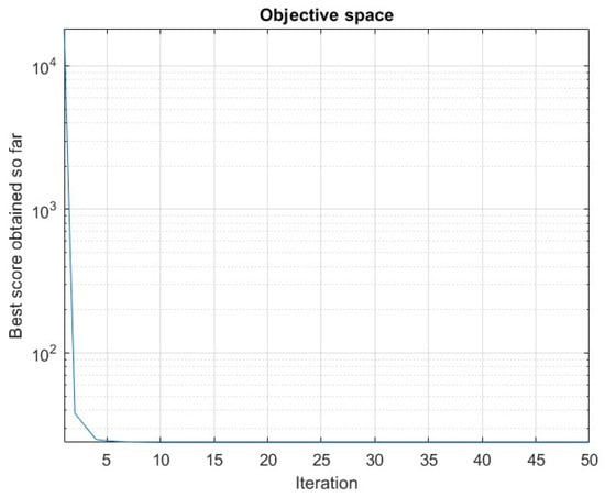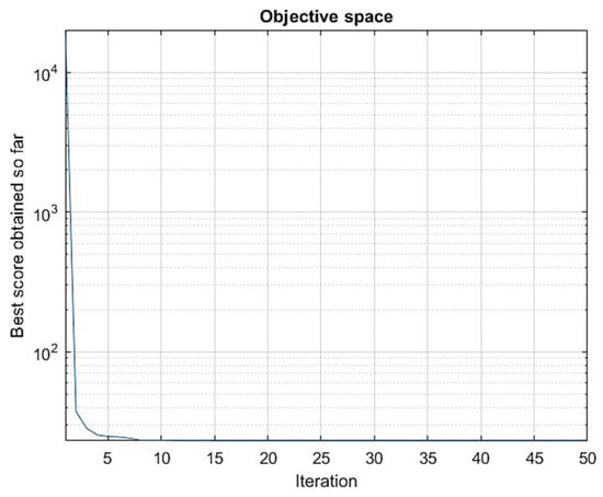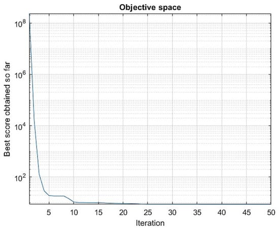 Figure 9) demonstrates the performance of the PSO algorithm, where the objective function value drops rapidly within the initial iterations. As iterations progress, the rate of decrease slows down, and by approximately the eighth iteration, the value stabilizes, which means the algorithm has effectively converged. This behavior reflects the algorithm’s ability to find an optimal solution for the given optimization problem.