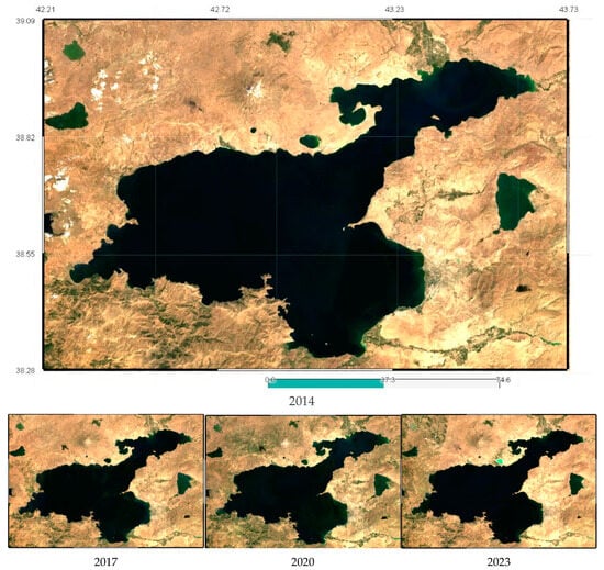 GEE offers users access to a wide range of freely accessible, public, multi-temporal remote sensing data. GEE offers a scalable and cloud-based platform for retrieving and processing geospatial data. GEE, with its supply of planetary-scale free geographic big data, effectively addresses the challenges of data availability, data storage, and data preprocessing. It also offers no-cost computer resources, enabling researchers and practitioners to perform computationally intensive geospatial big data analysis even with limited local computing and storage capabilities [18]. Researchers across all disciplines can now develop comprehensive insights at different scales (local, national, regional, continental, and global) thanks to the geospatial big data and computational capabilities provided by GEE [19]. There are many studies in the literature where lake area boundaries can be determined successfully with the GEE platform [1,20,21,22].