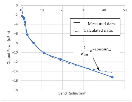 Figure 5, the relation between the bend radius and the transmitted power is very close to the derived one in Equation (24) and hence, we can assume that the approximations are valid.