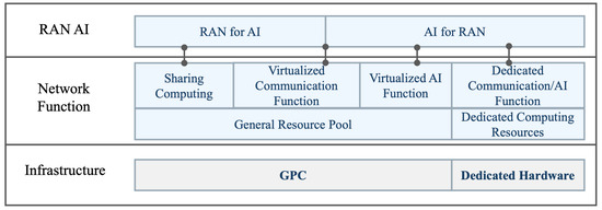 It appears that adopting general-purpose computing (GPC) platforms and cloud-based solutions is an important direction for the evolution of the RAN to natively support AI capabilities. However, compared to dedicated hardware, GPC platforms still face many challenges. As shown in Table 1, GPC platforms use transparent protocols and decouple software from hardware, offering better openness [20,21]. However, replacing dedicated baseband processing units with a general-purpose processor results in significant shortcomings in performance and energy efficiency. Dedicated hardware, on the other hand, has low energy consumption and high technological maturity, making it more suitable for current network requirements. However, it lacks openness and flexibility and is heavily dependent on specific vendors.