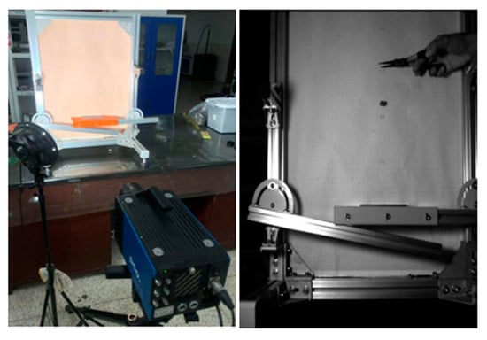 Randomly selected C. esculentus seeds free-fall from the drop position; after t1 time of collision with the contact plate (recorded time), the free-fall ends, and the fall speed is V. C. esculentus seeds will produce upward torque after the fall; at this time, the high-speed camera (Phantom T1340) will record the maximum height of seed bouncing (h) and the bouncing speed (V1). The test device is shown in Figure 7.