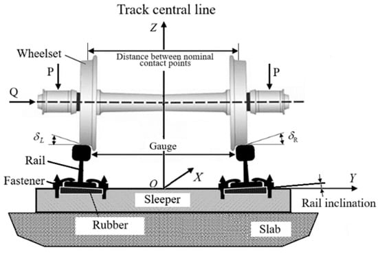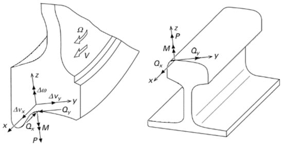 It is obvious that, in addition to the design parameters of the track, the level of contact stresses will also be influenced by the factors of the force interaction of rails and wheels. The analysis of theoretical and experimental methods for determining the forces of interaction of rolling stock with the railway track deserves a separate publication, since there are a lot of works in this direction. Let us mention only the excellent monographs [53,54,55], which have already become classics, as well as some review articles [56,57,58].