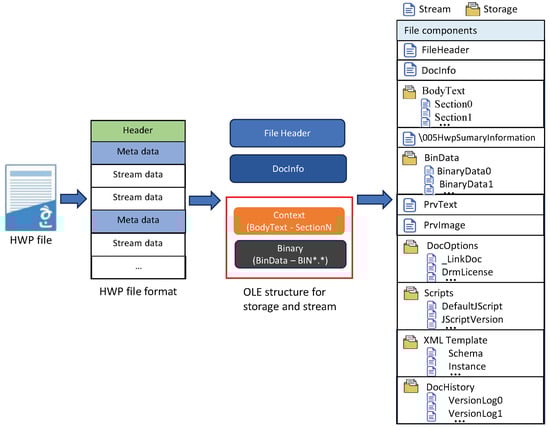 Our first focus is on HWP files. Our detection framework can be applied to PDF or RTF file formats; an HWP document shares the same object linking and embedding (OLE) structure as MS documents and rich text format (RTF) files. A malicious code is often embedded within objects, and extracting a malicious code from document objects is feasible. The main contributions are listed as follows:
