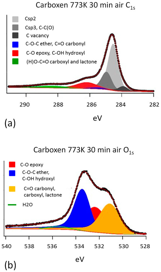 | C1s | C Sp2 | C Sp3 C-C(O) a | C Vacancy b | Ether, Carbonyl | Epoxy, Hydroxyl | Carboxyl, Lacton |