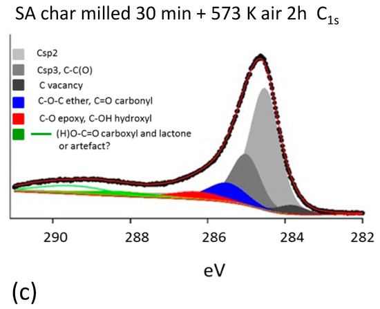 - Cheung, T.T.P. X-ray photoemission of carbon: Lineshape analysis and application to studies of coals. J. Appl. Phys. 1982, 53, 6857–6862. [Google Scholar] [CrossRef]