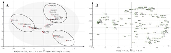 Analysis values are presented as mean. A two-tailed Dunnett’s test was used to test for significant differences between day 0 of storage and other storage days. Analysis of variance or Welch’s t-test was used to test for significant differences between OM and DM under the same storage conditions. These tests were performed using SPSS Statistics 17.0 (IBM Japan, Ltd., Tokyo, Japan, Table S2). The significance level was set at p < 0.05. Principal component analysis (PCA) [30,31] was performed for semi-quantitative VOC values using SIMCA 16 (Sartorius Stedim Biotech, Auvergne, France, Table S2).