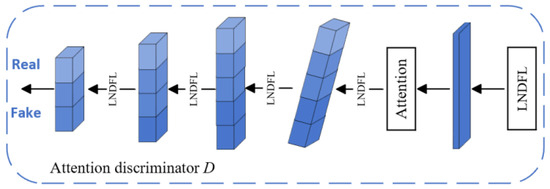 Thus, an attention discriminator was integrated into the point cloud generation network, as illustrated in Figure 5. The discriminator followed an autoencoder architecture. In this paper, we designed the attention discriminator by sequentially connecting the LNDFL and the biased attention layer (BAM) to enhance feature integration and the generative capabilities of the network. Specifically, the attention discriminator processed both the point clouds generated by the network and the real point cloud corresponding to the incomplete input through a feature extractor. It then output a discriminative feature vector. This vector underwent several local dynamic fusion steps before producing a binary classification value that indicated whether the generated point cloud is real or fake.