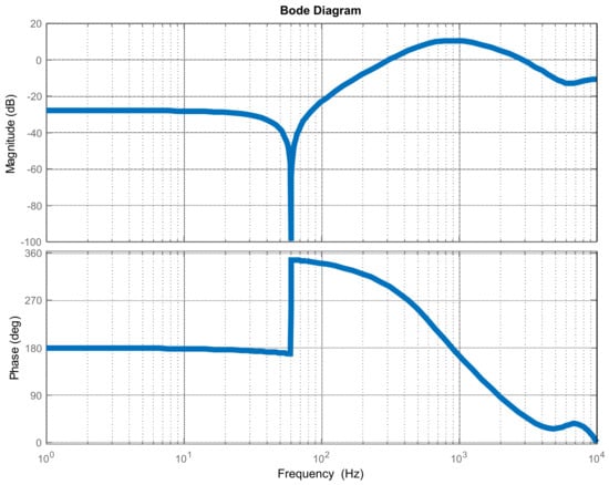 The Bode diagram that relates the reference and the output voltage is presented in Figure 10. The Bode diagram that relates the input current and the output voltage is presented in Figure 11.