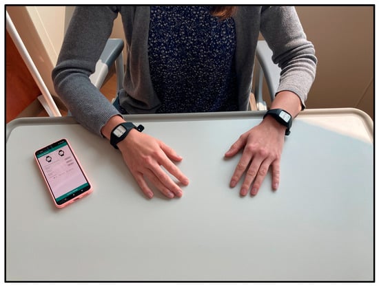 After each daily 8 h period, study personnel met briefly with the participant to assist as needed to doff the devices, check the participant’s skin where the devices were worn, and document the participant’s subjective comments about the devices. Study staff then removed the devices from the participant’s room and charged them for the next day’s use.