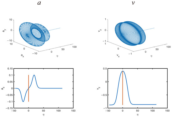 By analyzing the electron’s motion at different , the parameters of the electron interacting with the laser pulse up to a specific state can be obtained. The electron undergoes head-on collision with the laser pulse along the z-axis, and the influence of the laser pulse causes the electron to exhibit the motion trajectory shown in Figure 2. We define the motion along the z-axis as axial motion characteristics, while the motion in the plane is described as radial motion characteristics. Notably, after interacting with the laser pulse, the electron’s trajectory envelope forms an inner shape resembling an hourglass and an outer shape resembling an elliptical spindle, which is defined as the “hourglass-spindle shape”. This paper focuses on analyzing the formation process of the hourglass–spindle-shaped trajectory and the variation of its related parameters.