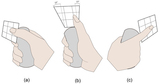 While there is no strict guideline for hand posture in cylindrical gripping, setting operational norms was necessary to prevent users from exerting excessive effort to achieve unreasonable operational goals [34]. Grip operations in work scenarios are expected to be common and stable. In order to present a uniform characterization of the grip operation, we propose the following operational specifications: