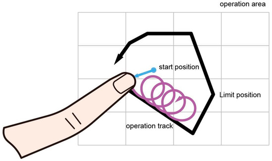 In order to reflect the dynamic operating range of users under high load, the experiment designed a repetitive traveling operation task (see Figure 5): participants were asked to finish the task without watching. They needed to start from any limit position (where operating fingers feel resistance) and draw the boundary of the polygon area in a spiral manner. Participants were instructed to maintain the sense of resistance while drawing to ensure that the boundaries represented the maximum range. The polygon boundaries are not fixed, and this is to provide participants with guidance for boundary exploration.