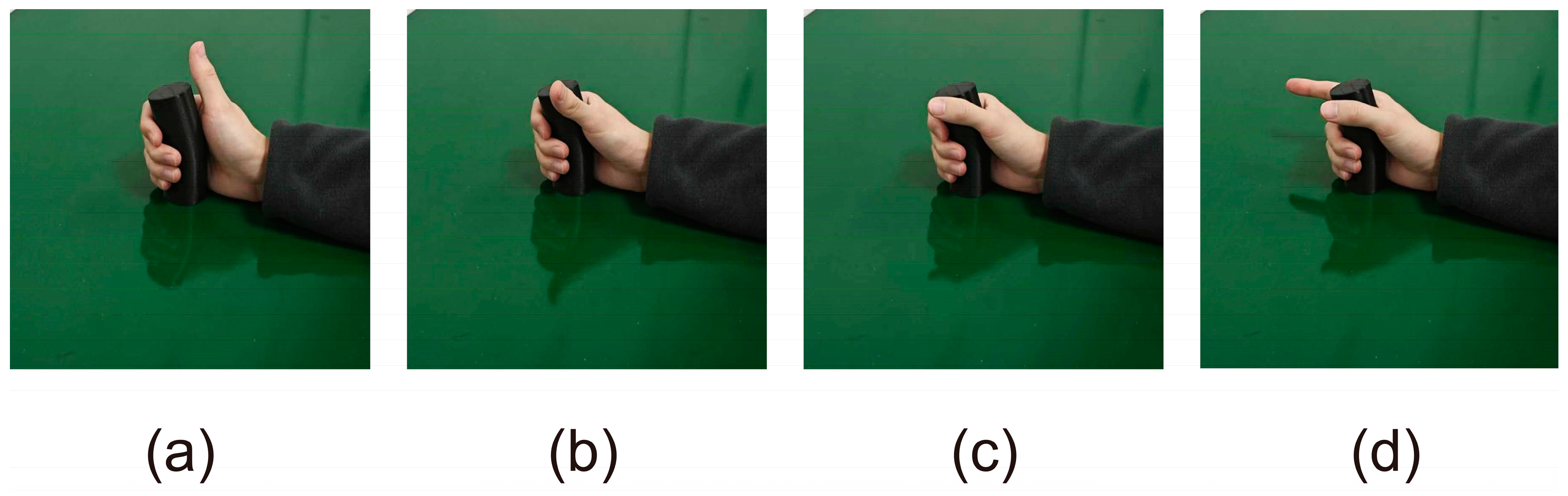 - Pylatiuk, C.; Kargov, A.; Schulz, S.; Döderlein, L. Distribution of Grip Force in Three Different Functional Prehension Patterns. J. Med. Eng. Technol. 2006, 30, 176–182. [Google Scholar] [CrossRef]
