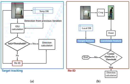Diagram of (a) target-tracking process and (b) re-identification (Re-ID) process for our experiments.