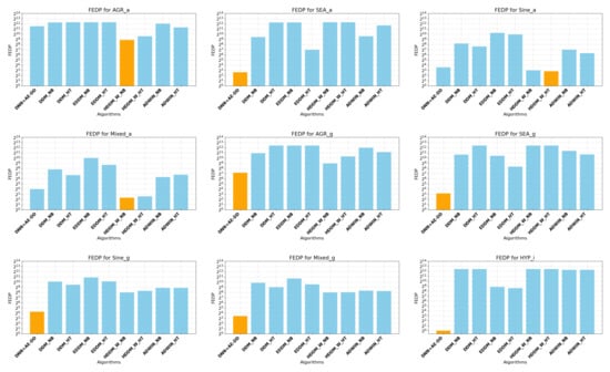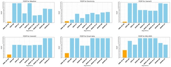Different algorithms’ comparsion of FEDP metrics about real-world data with single drift.