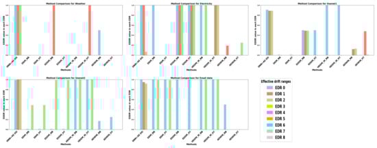 Different algorithms’ comparsion of EDDR metrics about real-world data with multiple drifts.