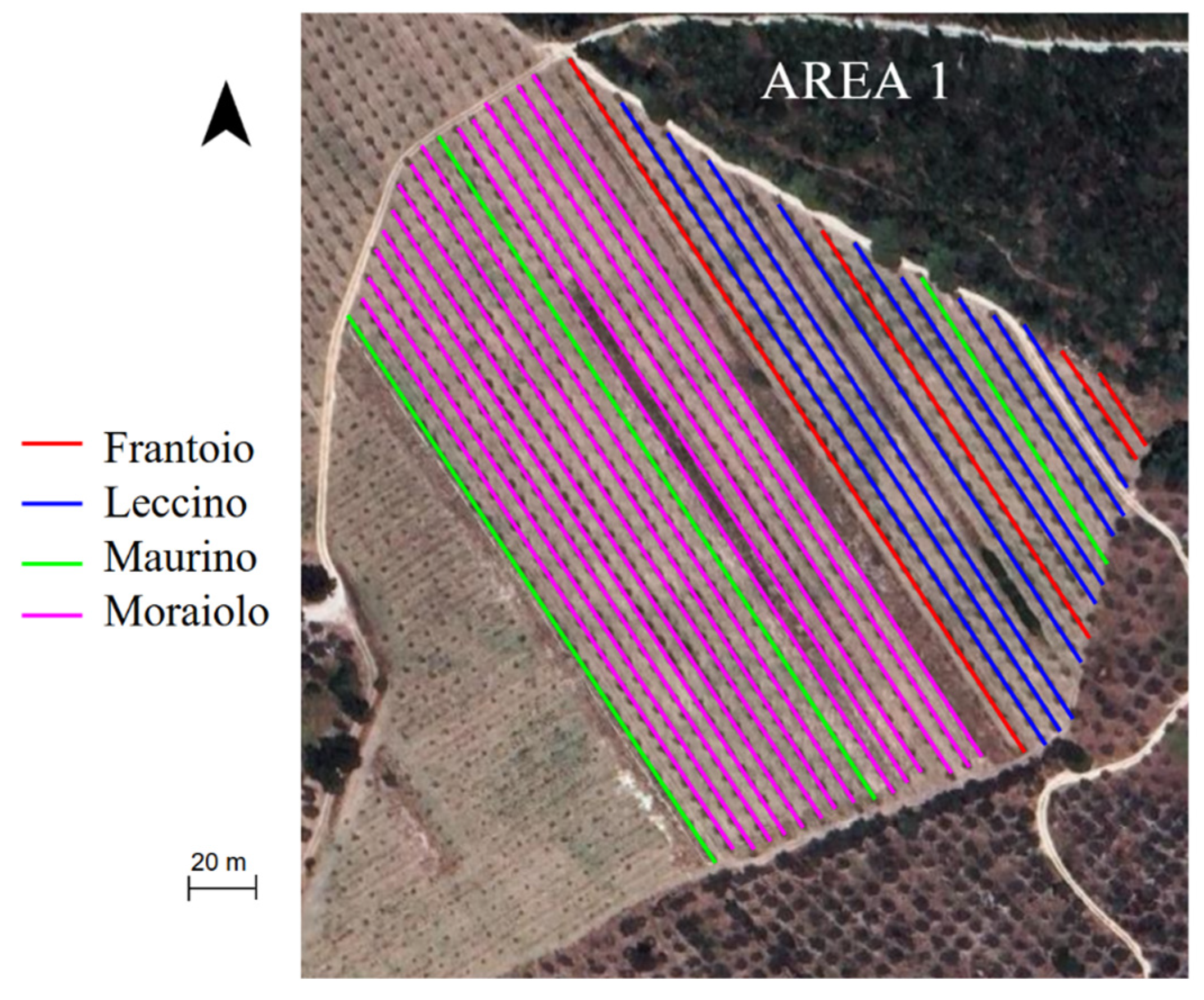 - Solano, F.; Di Fazio, s.; Modica, G. A Methodology Based on GEOBIA and WorldView-3 Imagery to Derive Vegetation Indices at Tree Crown Detail in Olive Orchards. Int. J. Appl. Earth Obs. Geoinf. 2019, 83, 101912. [Google Scholar] [CrossRef]