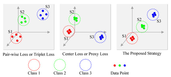 based on Data-to-Data Metric Learning effectively preserve inter-class structural relationships by pulling similar instances closer together while pushing dissimilar instances further apart. However, these approaches predominantly focus on the relative distances between samples without imposing global constraints on the intra-class distribution, which leads to intra-class dispersion. This limitation is further exacerbated by the hashing quantization process, which significantly undermines the model’s ability to capture fine-grained semantic representations. To address this issue, some recent strategies have emerged that are based on Data-to-Class Metric Learning, such as center loss
