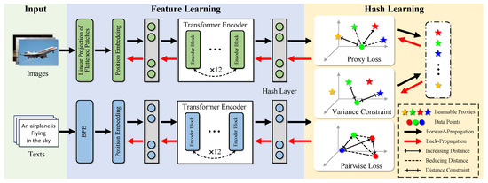 4], a learnable proxy is first generated for each label category. The hash representation is learned by bringing samples closer to their relevant proxies and pulling away irrelevant data-proxy pairs. For