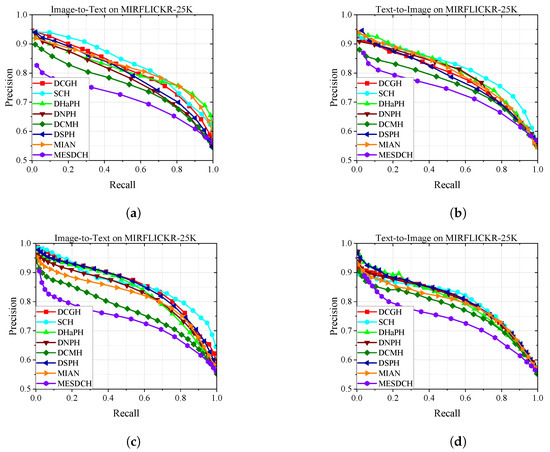Figure 6 show the PR curves on the MIRFLICKR-25K, NUS-WIDE, and MS COCO datasets at 16 bits and 32 bits, and