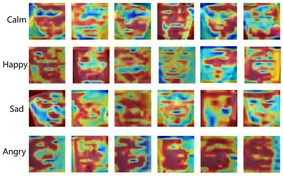 Facial expression is an important factor in evaluating an individual’s emotional state. Using electromyography, Rozga et al. [19] analyzed facial muscle movements under different emotions in children with autism and found that their zygomatic and frowning muscles show less variation than those of typically developing children. Jarraya et al. [20] used Inception-ResNet-V2 to extract facial expression features such as fear and anger in the meltdown state of children with autism, and developed a system for detecting and alerting meltdown emotions. Fatma et al. [21] developed a CNN-based emotion recognition system for children with autism that recognized six facial expressions in real time through a camera while children were playing games, and they generated analysis reports that can be used for the development of targeted therapeutic interventions.