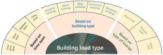The prerequisite for load forecasting is to clarify the type of load, which can enable a more precise analysis of forecasting requirements [38]. Based on this foundation, load forecasting issues can be categorized in detail according to the forecasting time horizon, the types of buildings involved, and the specific load types, as illustrated in Figure 2. Such categorization helps to gain a deeper understanding of the load forecasting problem, thereby developing more accurate and targeted forecasting strategies.
