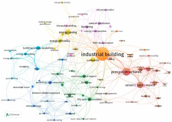 The energy consumption of industrial buildings is primarily concentrated in building equipment systems, such as heating, ventilation, and air conditioning systems [81]. Notably, the energy usage of industrial buildings is closely related to weather conditions, while energy usage in production is directly linked to equipment productivity. To accurately predict these variations, it is common to combine features such as air enthalpy, solar radiation, and wind speed to predict weather dependency, while considering factors like job progress, productivity, the number of employees, and the occupied floor area to determine production dependency [82]. Neri Banti [83] reviewed 203 scientific papers and summarized the events related to industrial buildings. Figure 6 illustrates the relationship between industrial buildings and various events, where the size of the spheres indicates the frequency of occurrence and the distance between them represents the degree of correlation. It is evident from the figure that energy saving and consumption is an area of significant concern in industrial buildings.