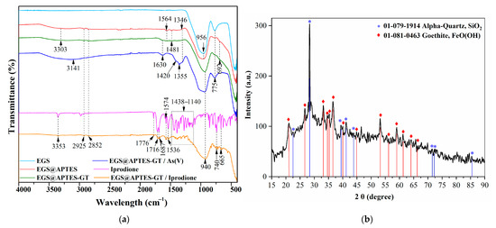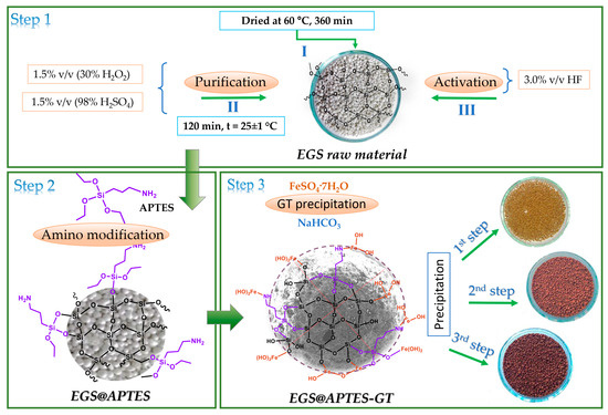 3.1. Characterization of the EGS@APTES-GT Hybrid Adsorbent