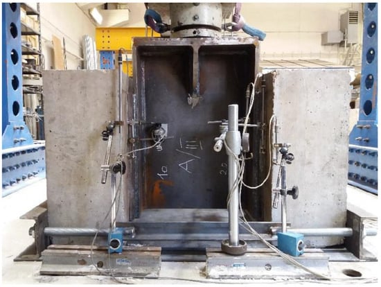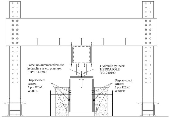 The research focuses on the development of a Python-based numerical model for steel–concrete composite connections, providing a comprehensive analysis of the effect of various geometric parameters. The FE model was calibrated and validated using the results of laboratory experiments, as illustrated in Figure 1. The experimental program was previously reported in [38]. The tests adhered to the standards outlined in Eurocode [10], employing incremental load application and following the prescribed methodology.