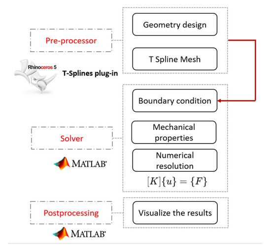 Numerical resolution (Solver): The matrix system of elastic linear equations, [K]{u} = {F}, was formulated and solved using the MATLAB solver, specifically developed for the T-Splines IGA approach to study the mechanical performance of LPG cylinders.