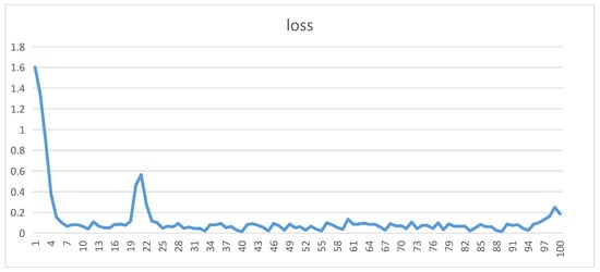 Figure 4 illustrates the loss curve during the ResNet18 model training process, where the horizontal axis represents training epochs (unitless, ranging from 0 to 100), and the vertical axis indicates loss values (unitless, ranging from 0 to 1.8). The loss value is defined as the cross-entropy loss between the model’s predicted probabilities and true labels, serving as a metric for evaluating classification performance [38]. The calculation formula is as follows: