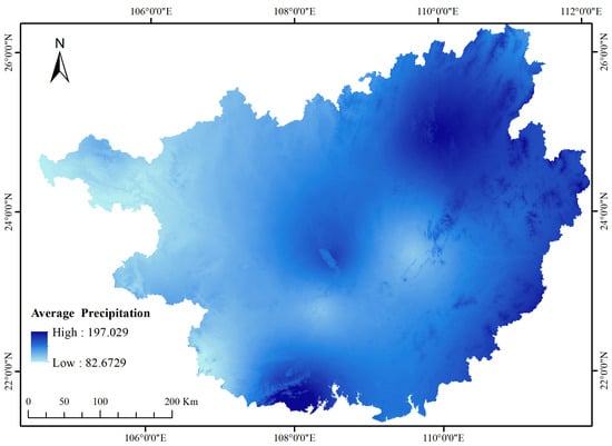 Average annual precipitation in the Guangxi Zhuang Autonomous Region.