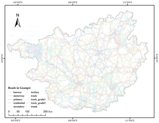 Roads in the network-classified map of the Guangxi Zhuang Autonomous Region.