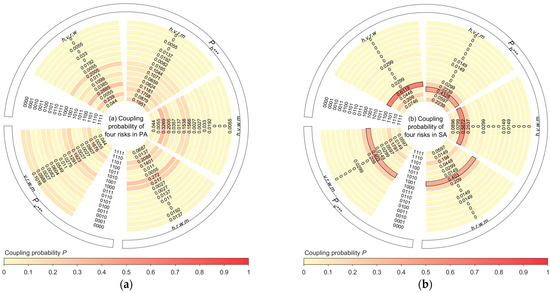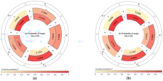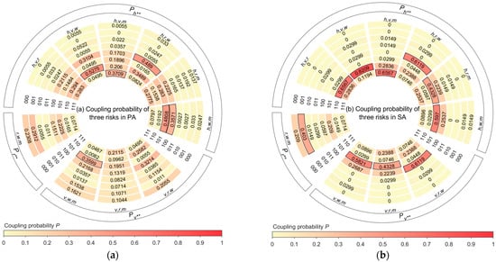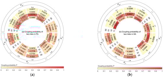 where , , , , , , , , , and represent the joint probabilities (or coupling probabilities) of two-factor risk. Taking as an example, it is calculated as follows: