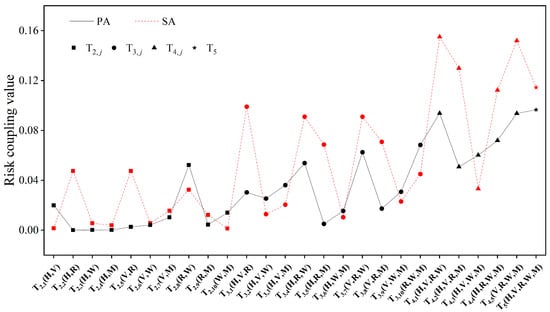The risk coupling value for the two-factor coupling type was calculated as follows: