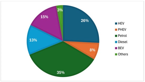 Market share for different types of vehicles in the EU 27 in 2023 (adapted from [15]).