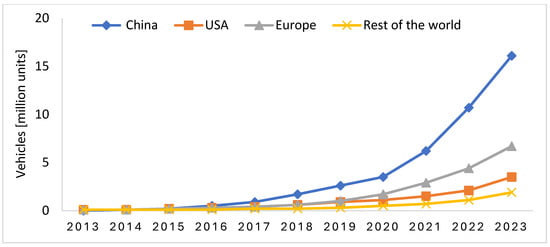 Ownership of BEVs, 2013–2023 (adapted from [17]).