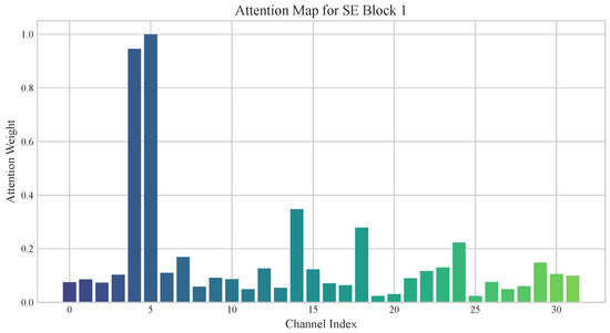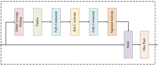 To refine and enhance the learned feature representations, SE blocks are incorporated following each convolutional layer, as shown in Figure 7. The SE blocks introduce an adaptive attention mechanism that emphasizes informative feature channels while suppressing less relevant ones, effectively improving the model’s sensitivity to important features within the data. This is achieved through a two-step “squeeze” and “excitation” process.